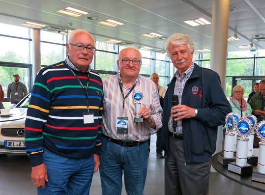 Der Pokal für den ältesten Fahrer oder Fahrerin wurde von Karl Heinz Monse (1936), mitte an Richard Friedrich (1940) links übergeben, Karl Heinz Monse hatte bereits bei dem SLK Classic Treffen 2011 eine Pokal erhalten.