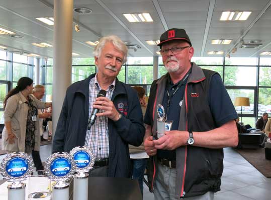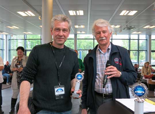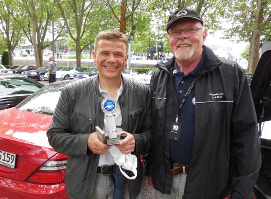 Stellvertretend hat Günter Oelschlaeger den Pokal für Claus Fein übernommen. Er unterstützt SLK Classic bei Fragen zu den Technik Tipps ,
