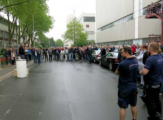 Viele Werksangehörige haben es sich nicht entgehen lassen, diese seltene Situation mitzuerleben.